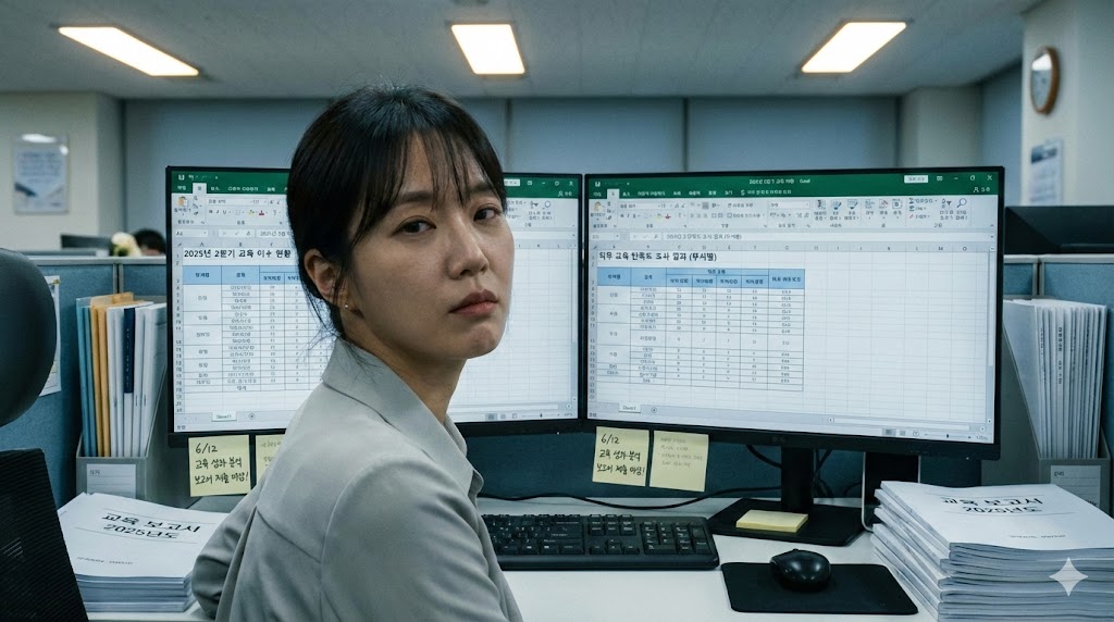 이 직원에게 주어진 KPI는 단순해 보였습니다. IDP(개인개발계획) 설정 현황율, 법정교육 이수율, 수료율, 교육 평점. 숫자 몇 개로 정리되는 지표들이었지만, 그 숫자를 꺼내는 과정은 전혀 단순하지 않았습니다.