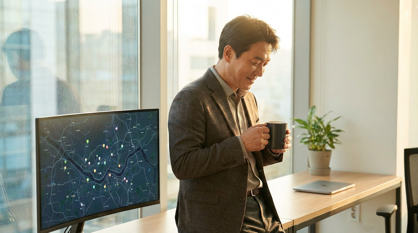 이제 김 차장의 아침은 다릅니다. 출근해서 스크립트를 실행하면, 수 분 안에 지도 한 장이 완성됩니다.